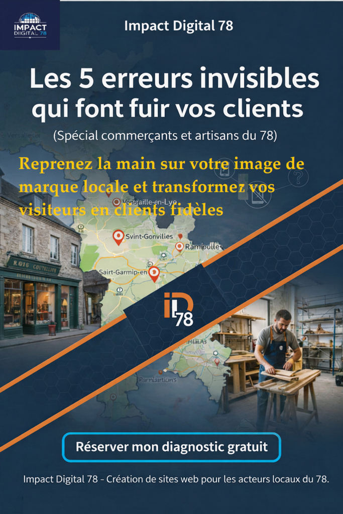 Sans le savoir, certaines erreurs invisibles peuvent faire fuir vos clients avant même qu’ils ne vous contactent. Cet audit digital gratuit a été conçu spécialement pour les artisans, commerçants et indépendants du 78 qui souhaitent améliorer leur visibilité, leur crédibilité et leurs conversions, sans se perdre dans des solutions complexes.